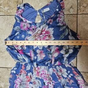 NWT Lara G by Lara Guidotti Silk Blend Denim Floral Maxi Dress Size Large