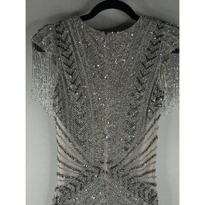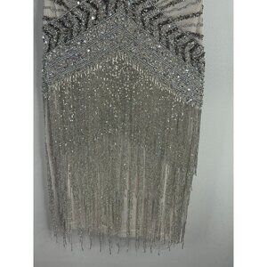 NWT Lara Silver Fringe Beaded Mini Cocktail Dress Short Sleeve V-Neck Size 2