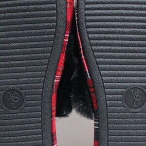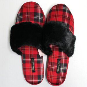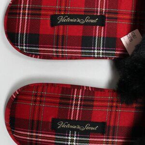NWT Large 9-10 Victoria's Secret Plaid Slippers With Faux Fur Trim & Dust Bag