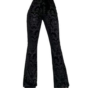 NWT Large Black Velour Damask Brocade Goth Cthulhu Flares