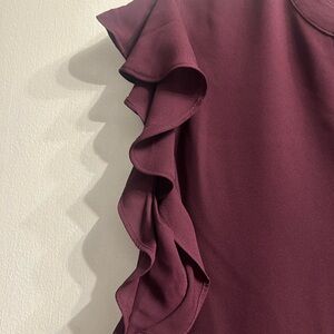 NWT Large Calvin Klein Women's Ruffle Sleeve Blouse - Dark burgundy