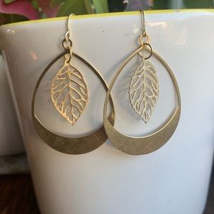 NWT Large Gold Geometric Teardrop & Leaf Minimal Bohemian Earrings✨Handmade✨