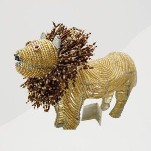 NWT Large Handcrafted Beaded Wire LION-Animal Art Sculpture / Figurine 13”x9"