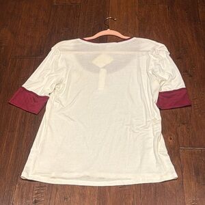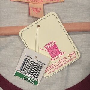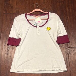 NWT! Large Rebellious One White and Burgundy Henley with Smiley Patch