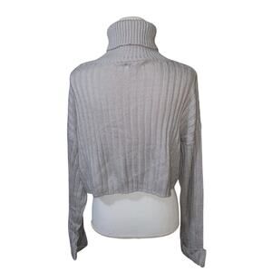 NWT Large Womens Gray Knit Cropped Turtleneck Sweater Top Preppy F21 Cuff Sleeve