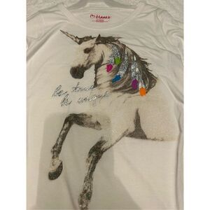 NWT glittery rainbow color Unicorn long sleeves white teeshirt. New with tags. Three XL available. Hanes brand.
