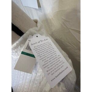 Band of Gypsies new brand BAND OF THE FREE makes this “Raquel” cropped, cable-knit, mock neck sweater. The Band of Gypsies BAND OF THE FREE pullover sweater is a must have for every fashion-conscious woman. The ivory color and ribbed knit make it perfect for any occasion, whether casual, work day or the board room. Ivory long sleeves add a touch of elegance, but the lightweight fabric is perfect for all seasons. It’s 63% acrylic, 26% Polyester and 11% nylon. Hand wash (cold) separately and hang to dry. This is for the bohemian, the minimalist or the preppy! Size Large