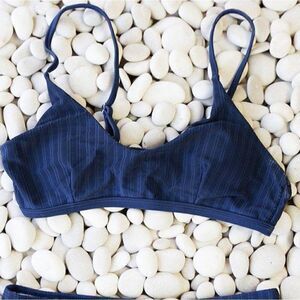 Adorable ribbed bikini set in navy. Flattering for all body types!