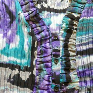 Purple, turquoise/ teal blue, white, gray and black artistic swirl, tie-dye vibes