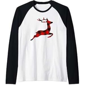 NWT Lascana Red & Black Buffalo Plaid Deer Family Funny Raglan Tee