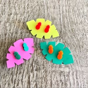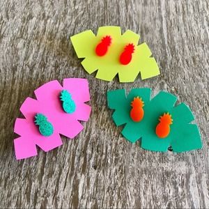 NWT Laser Cut Pineapple Stud Earrings in Neon Orange LAST PAIR