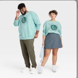Latino Heritage Month Adult Gender Inclusive Hola Sweatshirt - Mint Blue, This sweatshirt includes a fun text graphic that reads "Hola" (hello). The mint blue color is eye-catching and matches with any bottom, so you can easily pair it with your favorite outfit and express your pride and unique style! The regular-fit, crewneck sweatshirt sits at the hip for a laid-back and classic look. Size: XL. Color: blue/mint. Gender: unisex. Pattern: Solid. No trades