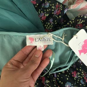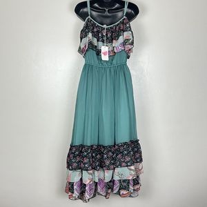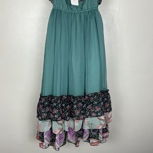 NWT Latiste By Amy Free Spirit Flowy Deep Sage Tiered Midi Dress Size S