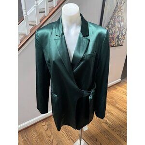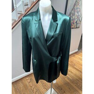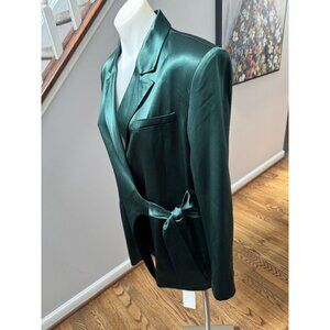 NWT Lattelier Green Silky Satin Tie-Waist Blazer Jacket Wrap Size Small