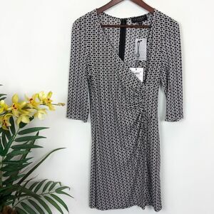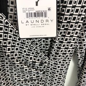 NWT Laundry By Shelli Segal Black White Faux Wrap Dress