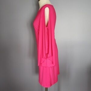 Own this figure flattering NWT Laundry by Design Cold-Shoulder Shift Dress featuring slitted scalloped-hem butterfly Sleeves and round neck line.