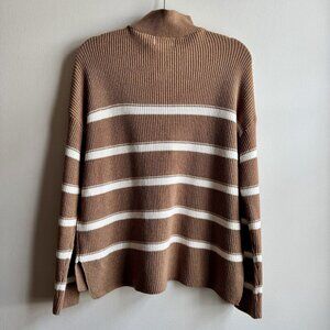 NWT Laundry by Shelli Segal Half-Zip Striped Sweater Size Medium Brown & White