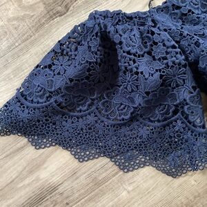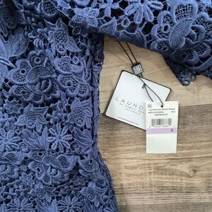 NWT Laundry by Shelli Segal Off Shoulder Maxi Dress Blue 6 Lace Ruffle wedding