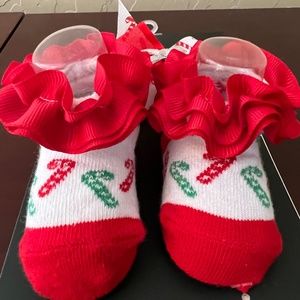 NWT Laura Ashley Christmas 2 Piece Set (Head Wrap & Socks) - 0-12 months