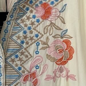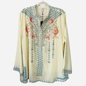 NWT Laura Klein Tunic Top Size XXL Embroidered Roll Tab Sleeve Lined Boho Yellow