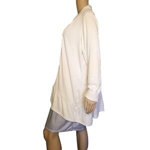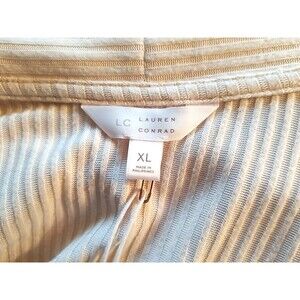 Elevate your casual wardrobe with this NWT Lauren Conrad Cardigan. The long sleeve cardigan features an open front neckline and a tight-knit ribbed pattern, perfect for an outdoor theme. Made of a blend of polyester and spandex, this sweater is breathable and machine washable for easy care. The English cream color and casual sleeve type make it suitable for both spring and summer occasions. This regular fit sweater is available in size XL and is a must-have for any woman's wardrobe. Add this stylish cardigan from LC Lauren Conrad to your collection today! Style - Long Line Cardigan Retail $44.