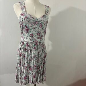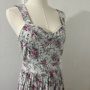 This beautiful Lauren Conrad sundress is perfect for any occasion. The floral pattern and pleated accents create a feminine and bohemian vibe, while the sweetheart neckline and heart-shaped back add a touch of coquette charm. The dress is made of soft and lightweight rayon fabric, which makes it comfortable to wear during summer, fall, or spring.