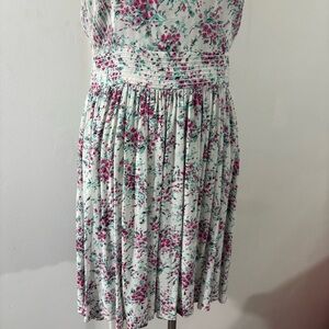 This beautiful Lauren Conrad sundress is perfect for any occasion. The floral pattern and pleated accents create a feminine and bohemian vibe, while the sweetheart neckline and heart-shaped back add a touch of coquette charm. The dress is made of soft and lightweight rayon fabric, which makes it comfortable to wear during summer, fall, or spring.