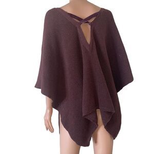 NWT Lauren Conrad LC Plum Open Poncho Criss Cross Back Deep burgundy OSFM