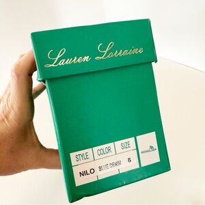 NWT Lauren Lorraine Nilo Pearl Denim Slides, Size 6