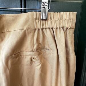 NWT Lauren Ralph Lauren 100% Silk Sz 16W Flat Front Tan Wide Leg Trousers