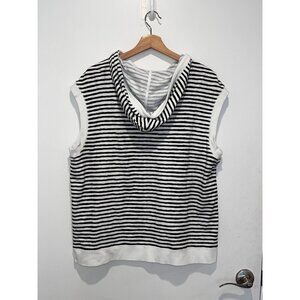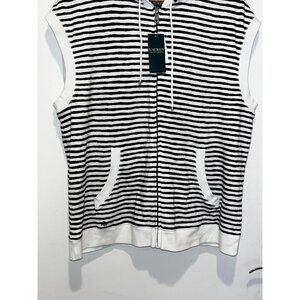 NWT Lauren Ralph Lauren Black & White Sleeveless Striped Zip Pockets Women's Hoodie Size L