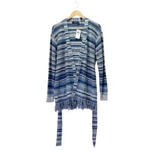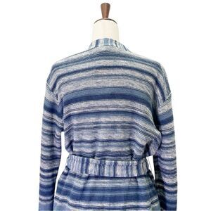 NWT Lauren Ralph Lauren Blue Striped Belted Linen-Cotton Cardigan Size Medium