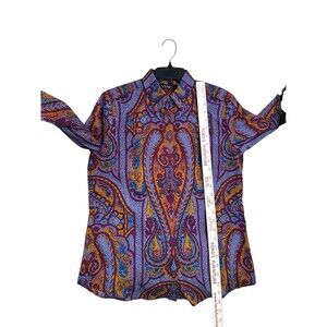 This gorgeous Lauren Ralph Lauren shirt features a vibrant, eye-catching paisley print in rich tones of Fuchsia, Purple, Gold, and Teal. Perfect for elevating your workwear, smart-casual, or weekend look.