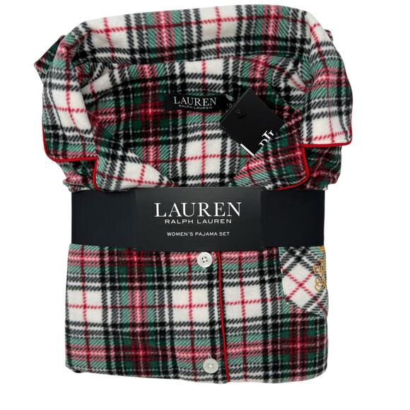 NWT Lauren Ralph Lauren Cozy Christmas Plaid Pajama Set XL Holiday Sleepwear