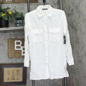 NWT Lauren Ralph Lauren Crushed Cotton Camp Shirt Cover Up 20113076 White XS