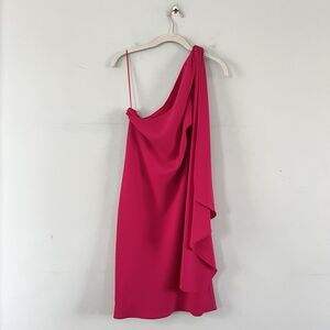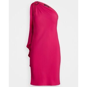 NWT Lauren Ralph Lauren Druzana Georgette Magenta One Shoulder Cocktail Dress