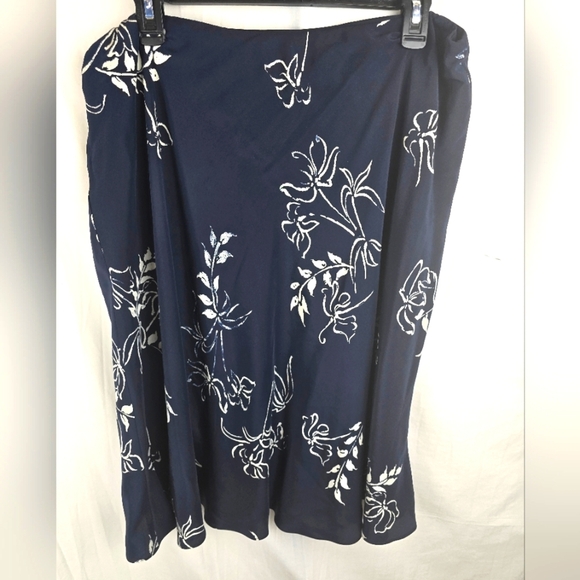 NWT Lauren Ralph Lauren Floral Navy 100% Silk Skirt Sz XL