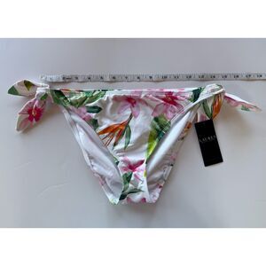 NWT Lauren Ralph Lauren Floral Side Tie Hipster Bikini Bottoms in White & Pink 6