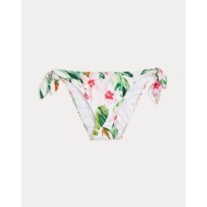 Designed with self-ties at each side, this hipster bikini bottom is refreshed for the season with a tropical floral motif realized in the style of watercolor paintings.