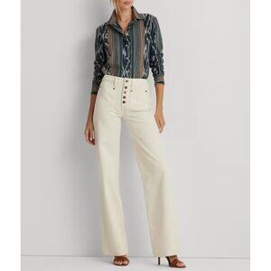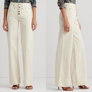NWT Lauren Ralph Lauren High Rise Wide Leg Jeans in Natural Cream Sz. 16