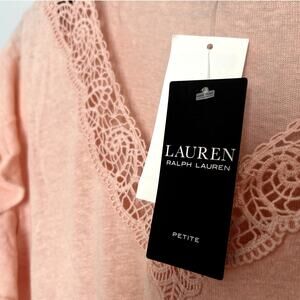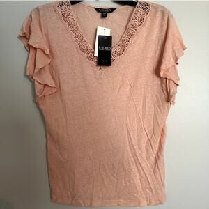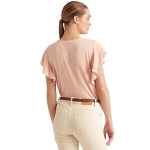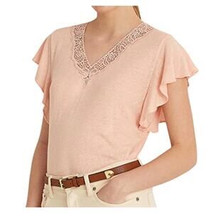 Keywords: Lauren Ralph Lauren top, flutter-sleeve blouse, petite large shirt, soft pink top, linen blend, lightweight shirt, NWT designer basics, spring fashion, feminine wardrobe staples, breathable blouse, workwear, classic layering piece
