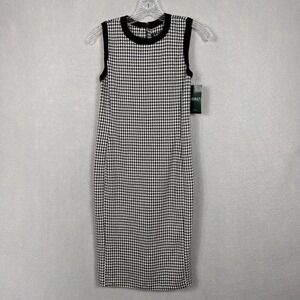 NWT Lauren Ralph Lauren Midi Dress Womens PXS Houndstooth Black White Sleeveless, back zipper closure.