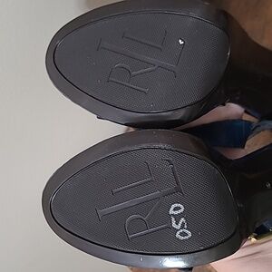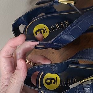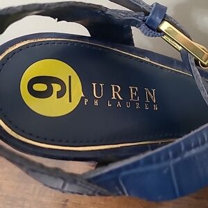 NWT Lauren Ralph Lauren Navy Strappy Platform Croc Embossed Heels size 9