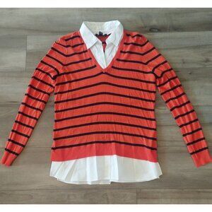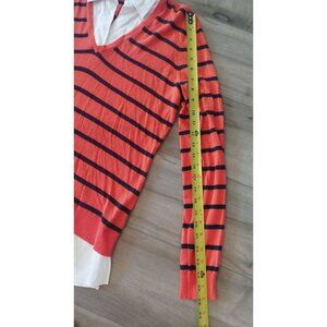 NWT Lauren Ralph Lauren Orange Striped Long Sleeve Built in Collar Shirt Sweater