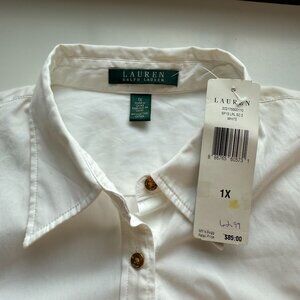 NWT Lauren Ralph Lauren Oversized Button-Up Shirt Top Womens 1X Timeless White