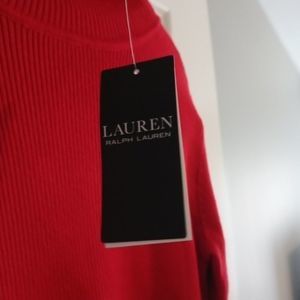 new with tags lauren ralph lauren red with black stripes turtleneck sweater size medium in womens. open to offers. perfect for the holidays.