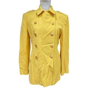 NWT Lauren Ralph Lauren USA Wool Yellow Double Breasted Military Coat Size 6