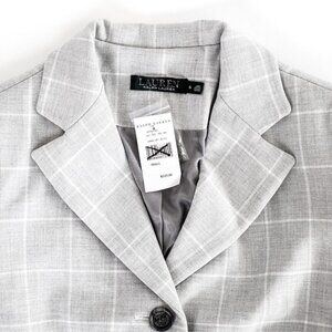 NWT Lauren Ralph Lauren Women's Gray Plaid Gingham Crepe Reefer Coat - Size S