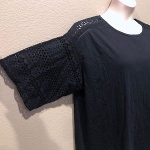 (NWT) Lauren Ralph Lauren Women's Navy Crew Neck Crochet Sleeve Top Plus Size