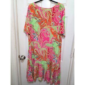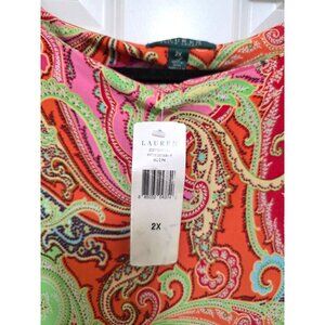 NWT Lauren Ralph Lauren Women's Plus Size Paisley Print Short Sleeve Dress Multi